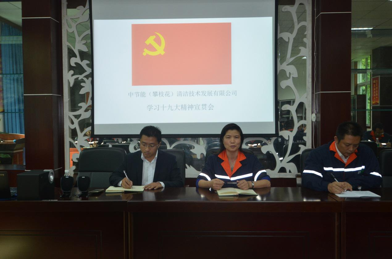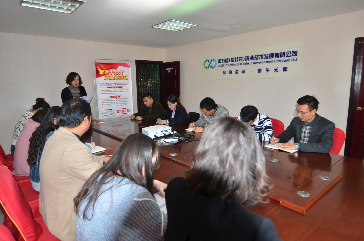掀起學(xué)習(xí)十九大熱潮  推動(dòng)公司持續(xù)發(fā)展                 -----中節(jié)能攀枝花公司深入學(xué)習(xí)十九大精神    2017年12月4日下午,中節(jié)能(攀枝花)清潔技術(shù)發(fā)展有限公司在廠區(qū)二樓會(huì)議室組織召開(kāi)“深入學(xué)習(xí)宣傳貫徹黨的
